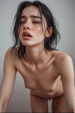 (naked, nsfw), 24 y.o, european, very small bust, orgasm face, black hair, doggystyle sex, skinny, no fat, thin body, sweaty, skin details, detailed eyes, highly detailed, 8k, 4k, ultra high definition, full body, perfect lighting |